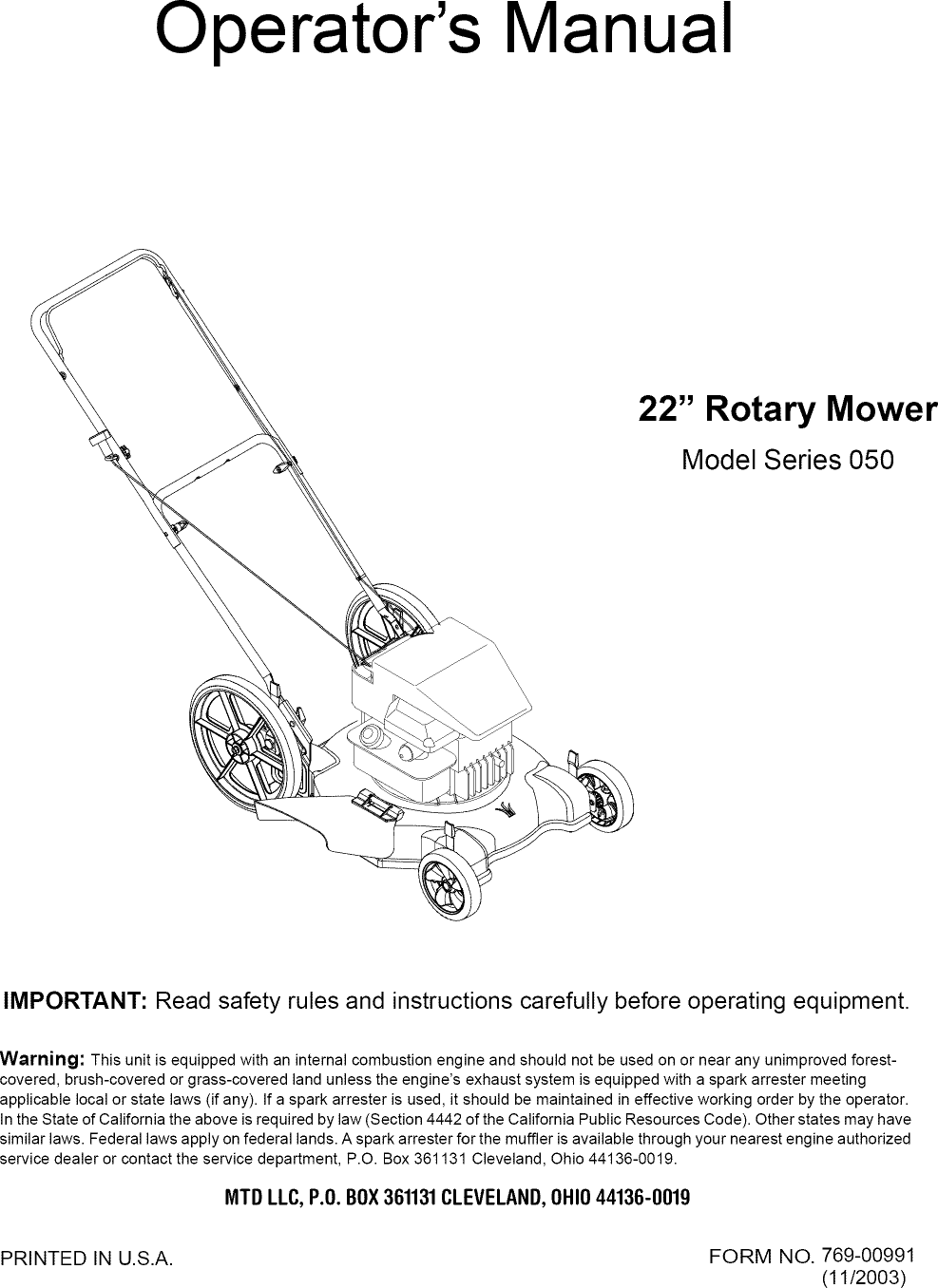 MTD 11A 052A731 User Manual LAWN MOWER Manuals And Guides 1108275L
