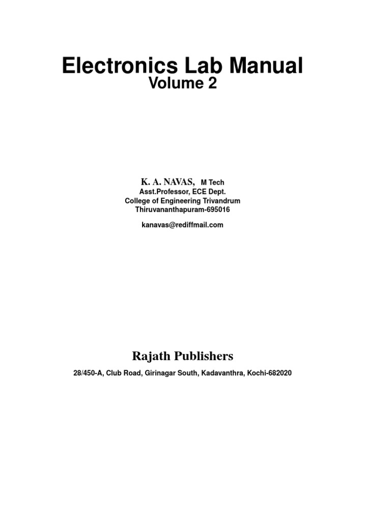 Electronics Lab Manual - Vol. 2: Buy Electronics Lab Manual - Vol. 2 ... Electronics Lab Manual - Vol. 2 (English, Paperback, K. A. Navas)