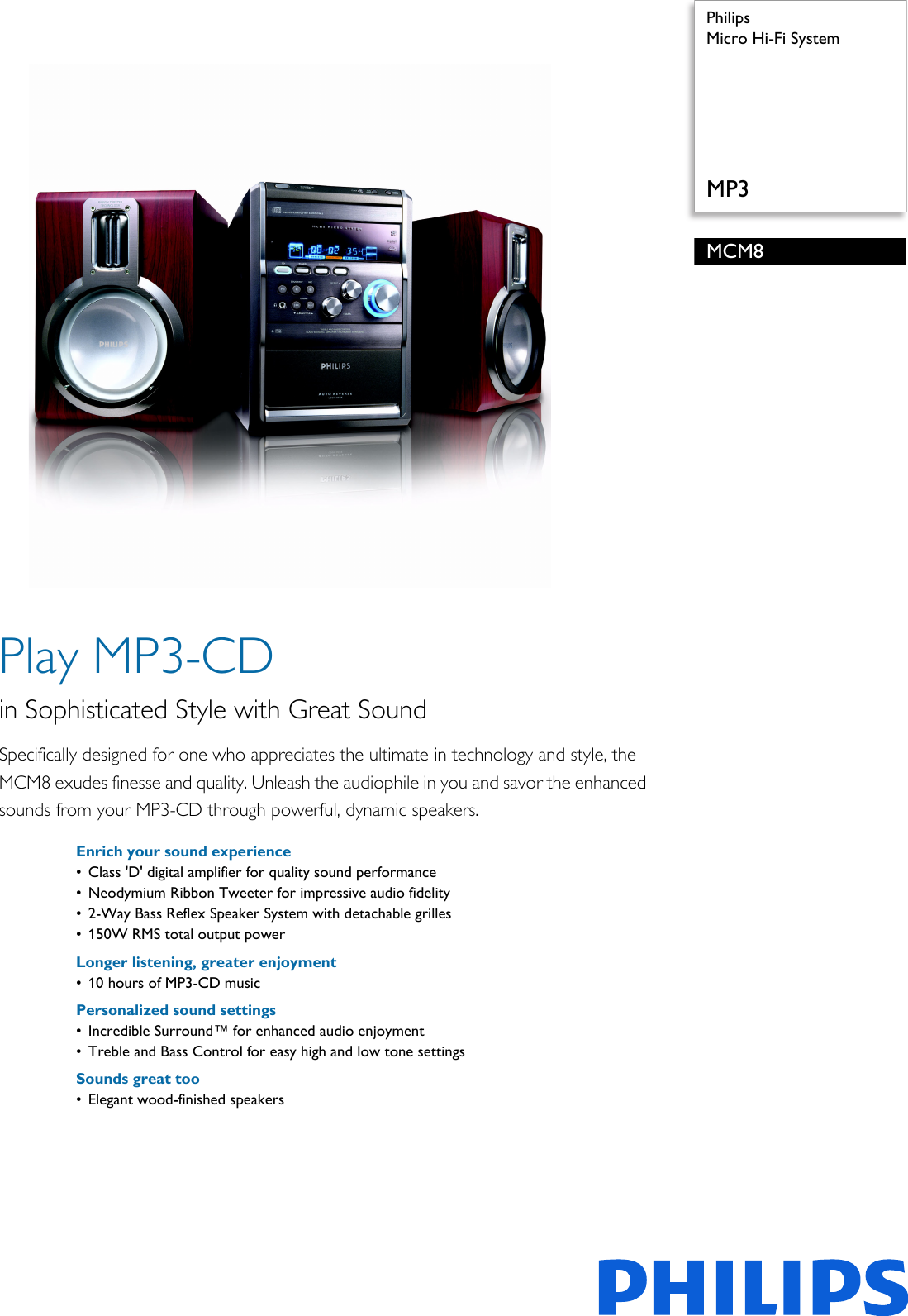 Philips MCM8/22 Micro Hi Fi System User Manual листовка Mcm8 22 Pss