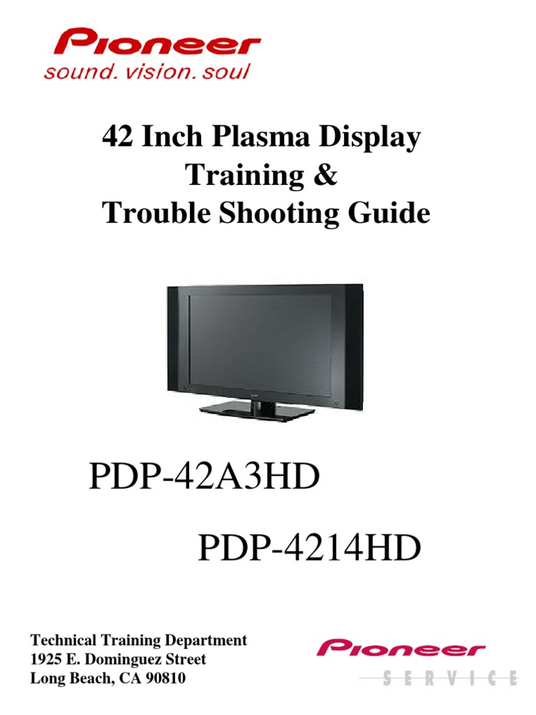 Pioneer Pfp42a3hd Plasma Tv Training Manual | Hdmi | Digital Television
