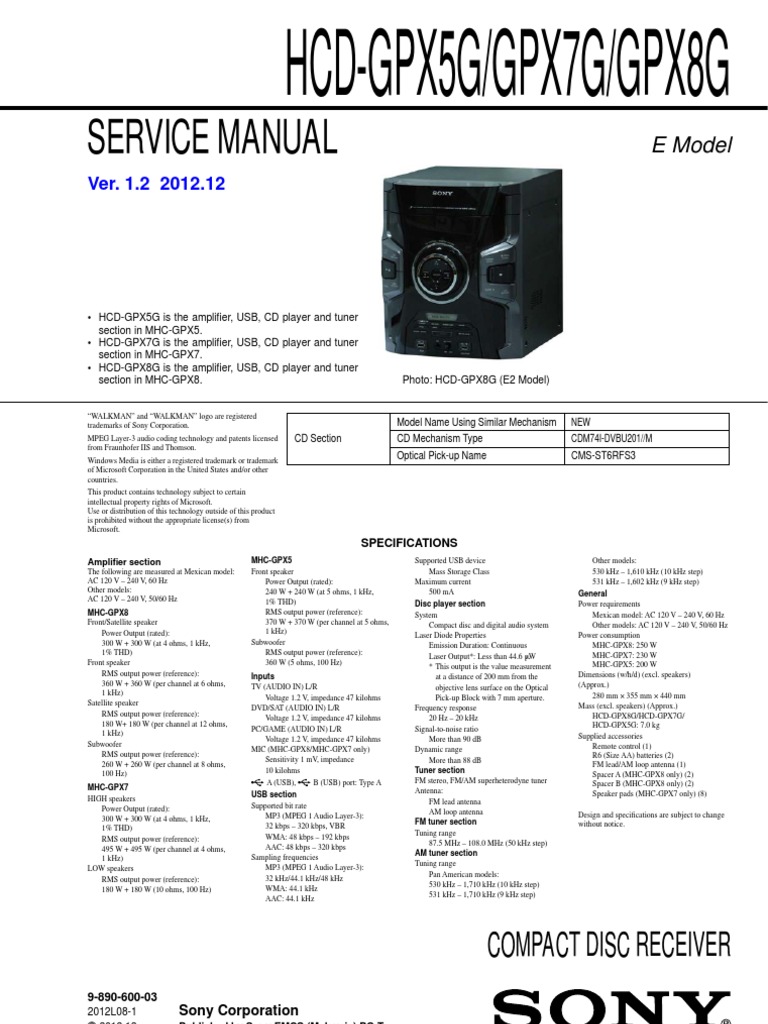 Hcd-gpx5g Gpx7g Gpx8g | Frequency Modulation | Amplifier