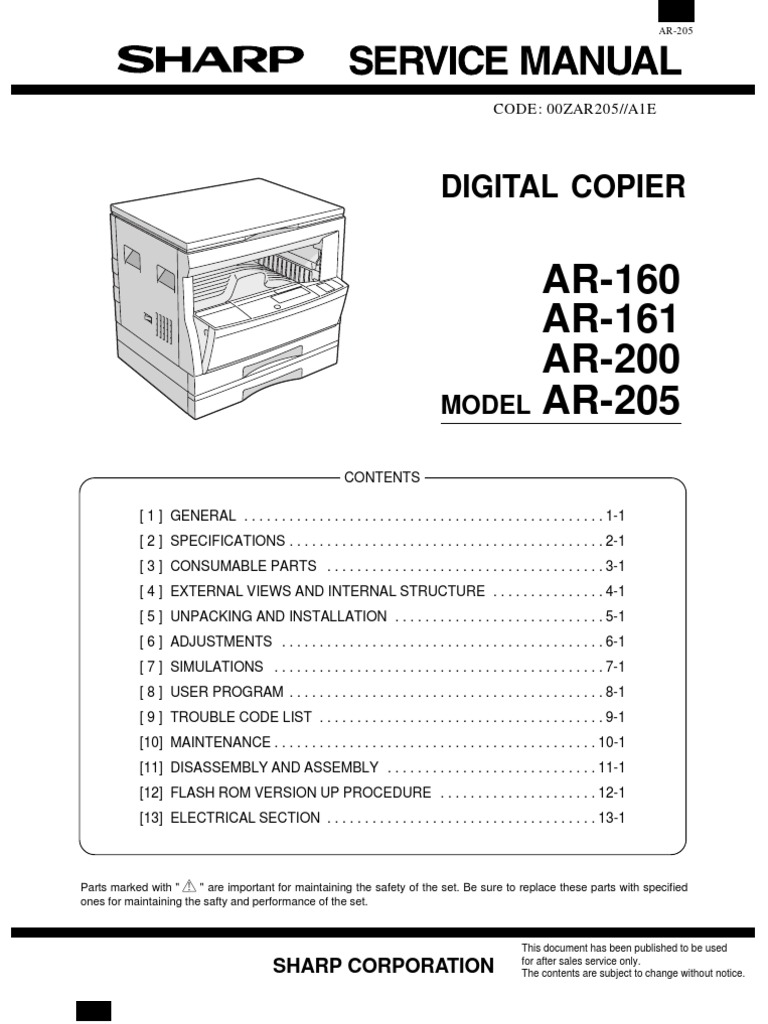 Sharp Ar 205 Service Manual(2) | Photocopier | Image Scanner