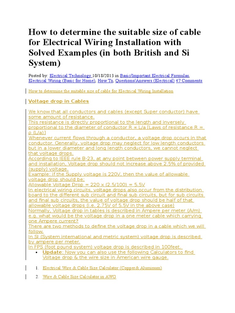 Determine Cable Size | Electric Current | Electrical Wiring