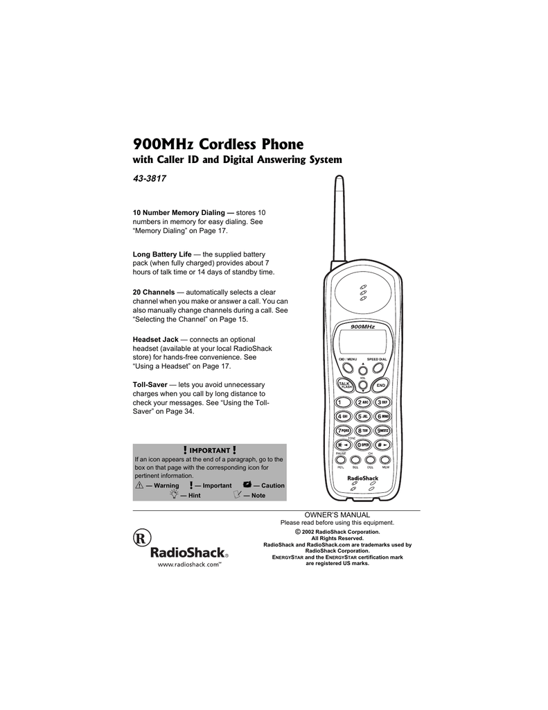 Radio Shack Digital Telephone Answering Device Manual - View and Download Radio Shack 5.8 GHz Multi-Handset Expandable Cordless Telephone with Digital Answerer owner's manual online. 5.8 GHz Multi-Handset Expandable Cordless Telephone with Digital Answerer. 5.8 GHz Multi-Handset Expandable Cordless Telephone with Digital Answerer Cordless. View and Download Radio Shack 900 MHz Digital Spread Spectrum Cordless Phone with Digital Answerer and Caller ID/Call Waiting Deluxe owner's manual online. RadioShack 900 MHz Digital Spread Spectrum Cordless Phone with Digital Answerer and Caller ID/Call Waiting Deluxe Owner's Manual.. Find helpful customer reviews and review ratings for Radio Shack Plug' n Power Home Security System at Amazon.com. Read honest and unbiased product reviews from our users..