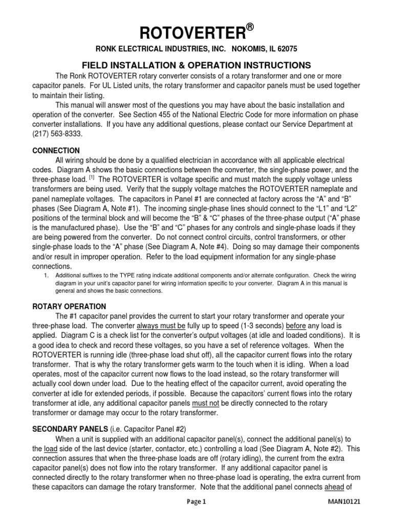 Rotoverter Manual 10121 | Capacitor | Transformer