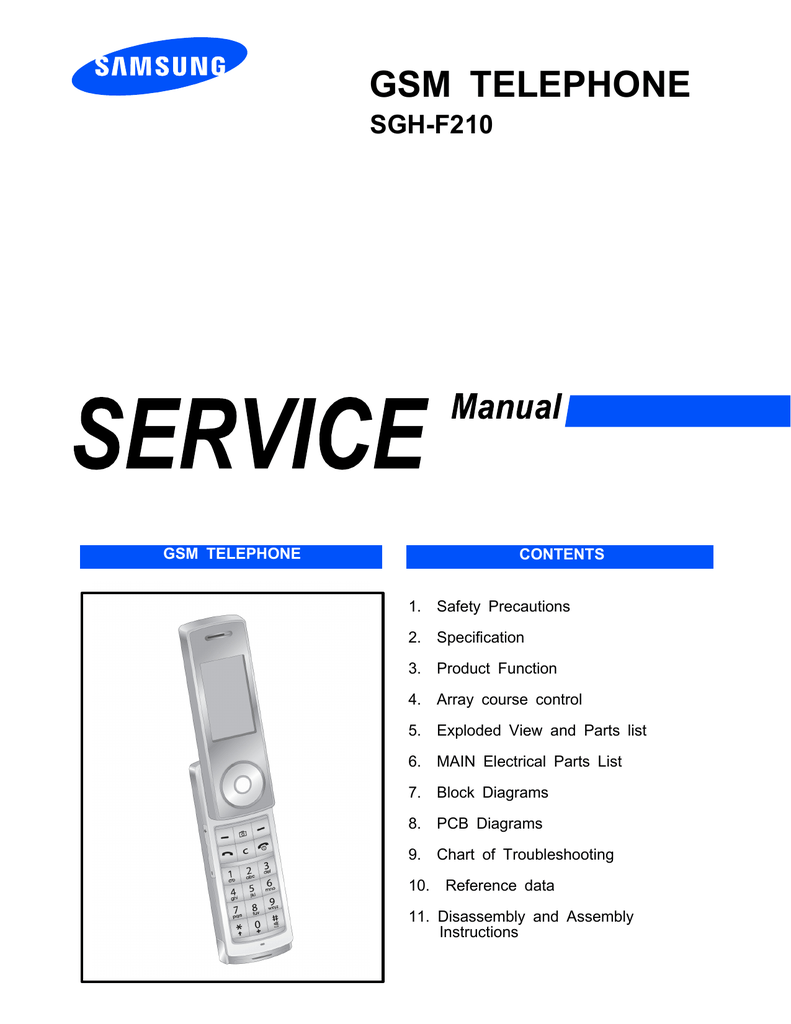 Free Download, service manual, user manual Samsung SGH-F210. SGH-F210 GSM TELEPHONE CONTENTS 1. Safety Precautions 2. Specification 3. Product Function 4. Chart of Troubleshooting 10. Reference data 11. Disassembly and Assembly Instructions. This Service Manual is a property of Samsung Electronics Co.,Ltd. Any unauthorized use of Manual can be punished under applicable International and/or domestic. Samsung F210 SGH-F210 Full phone specifications, specs, Manual User Guide - My Store, Download Samsung F210 Manual / User Guide PDF Tweet: Specification; Reviews (0) General; Other names: SGH-F210: Enhanced messaging service (EMS) uses some features defined in the Short Message Service (SMS) specification to enhance the user experience.