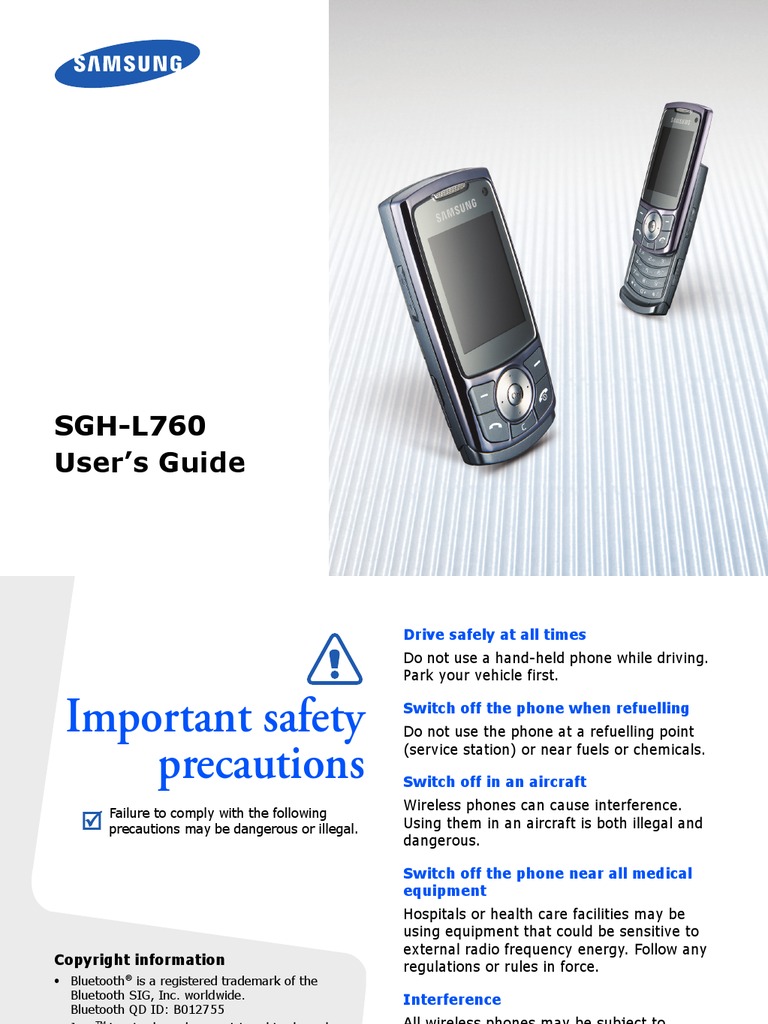 Samsung Sgh L760 Service Manuals - samsung sgh l760 service manual document other than just manuals as we also make available many user guides, specifications documents, promotional details, setup documents and more.. This Service Manual is a property of Samsung Electronics Co.,Ltd. ⓒ Any unauthorized use of Manual can be punished under applicable International and/or domestic law.. GSM TELEPHONE SGH-i560V GSM TELEPHONE CONTENTS 1. Safety Precautions 2. Specification 3. Product Function 4. Array course control 5. Exploded View and Parts List 6..