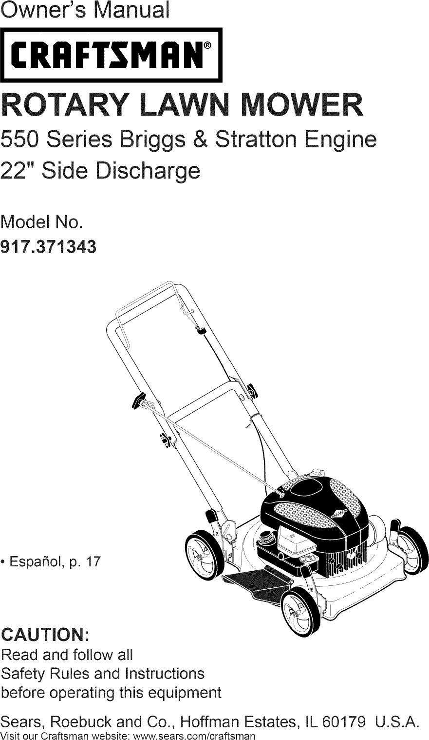 Craftsman 917371343 User Manual LAWN MOWER Manuals And Guides L0811868
