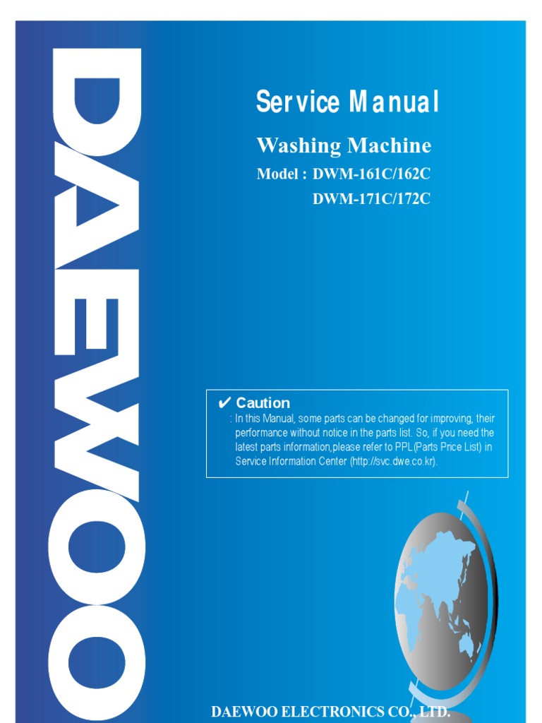 Daewoo DWF-204AY - Washing machine - Service Manual -- Free Service Manuals. Service manual search for washing machine Daewoo, washing machine model definition. All washing machine Daewoo models that exist in our database are represented on this page.. Service manuals, operating instructions and schematic diagrams for maintenance and repair washing machines Daewoo. All circuit diagrams, specifications, wiring diagrams, troubleshooting components disassembly procedures, adjustment washing machines submitted in PDF..