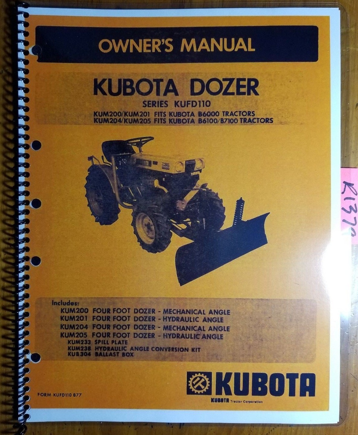 Kubota Tractor KUFD110 Dozer Owner's Manual | eBay