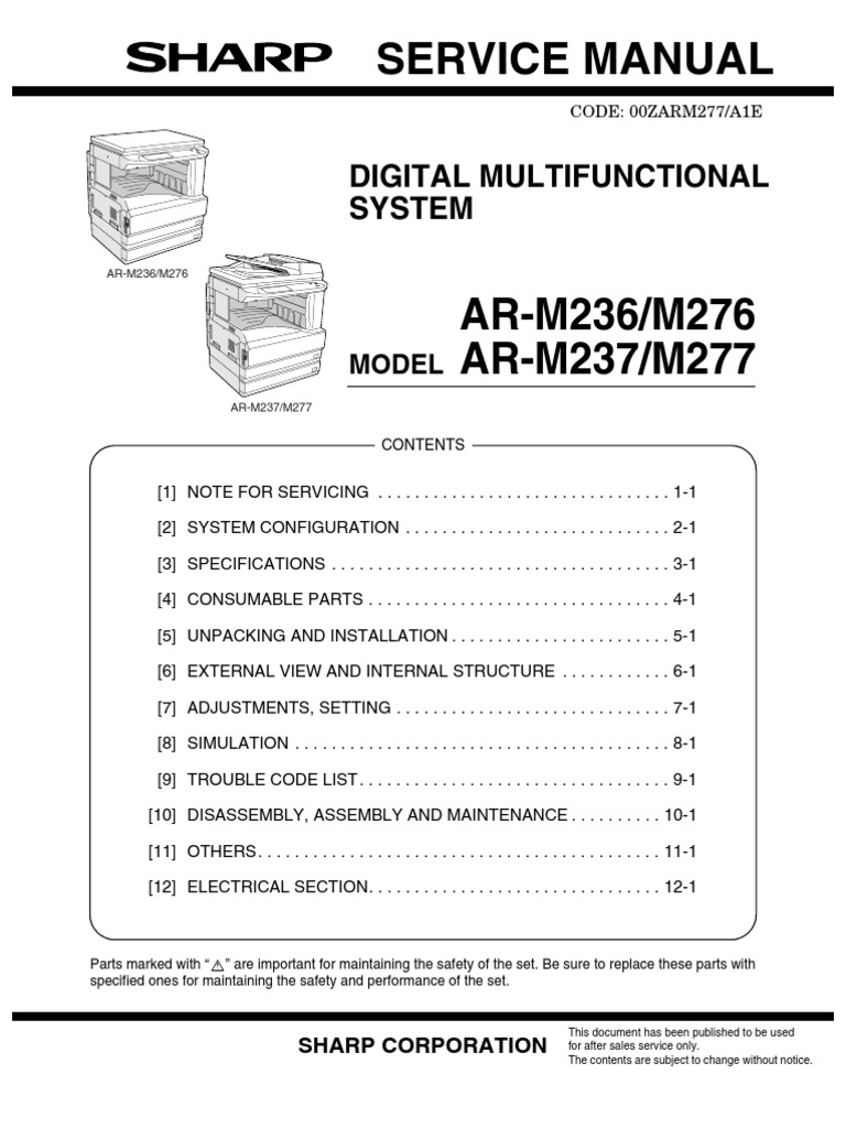 Service-Manual-Sharp-AR-M237 | Image Scanner | Printer (Computing)