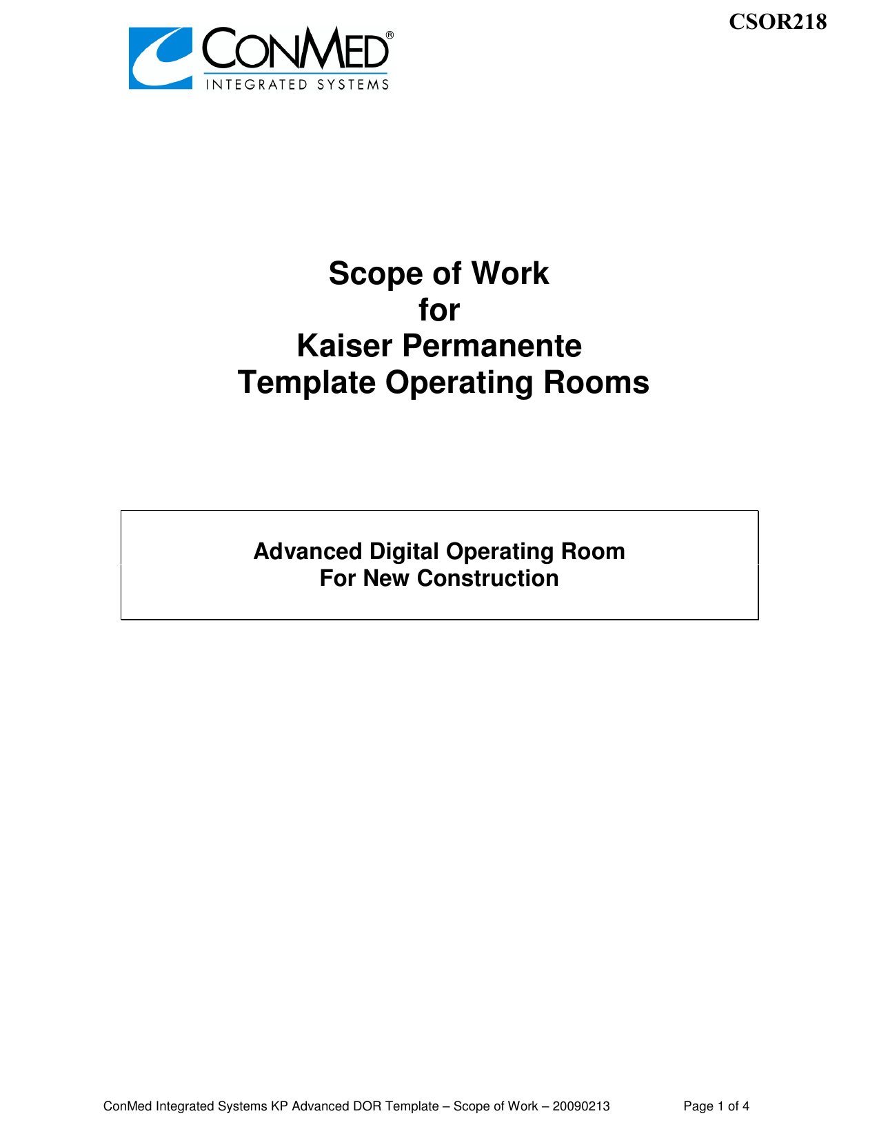 Scope of Work for Kaiser Permanente Template Operating Rooms ...