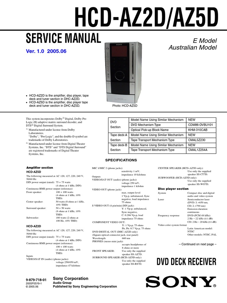Sony HCD-AZ5D AZ2D service manual.pdf | Compact Disc | Cd Rom