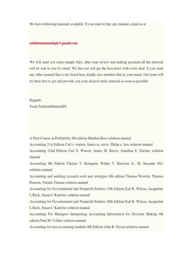 Solution Manuals Download | Accounting | Economics