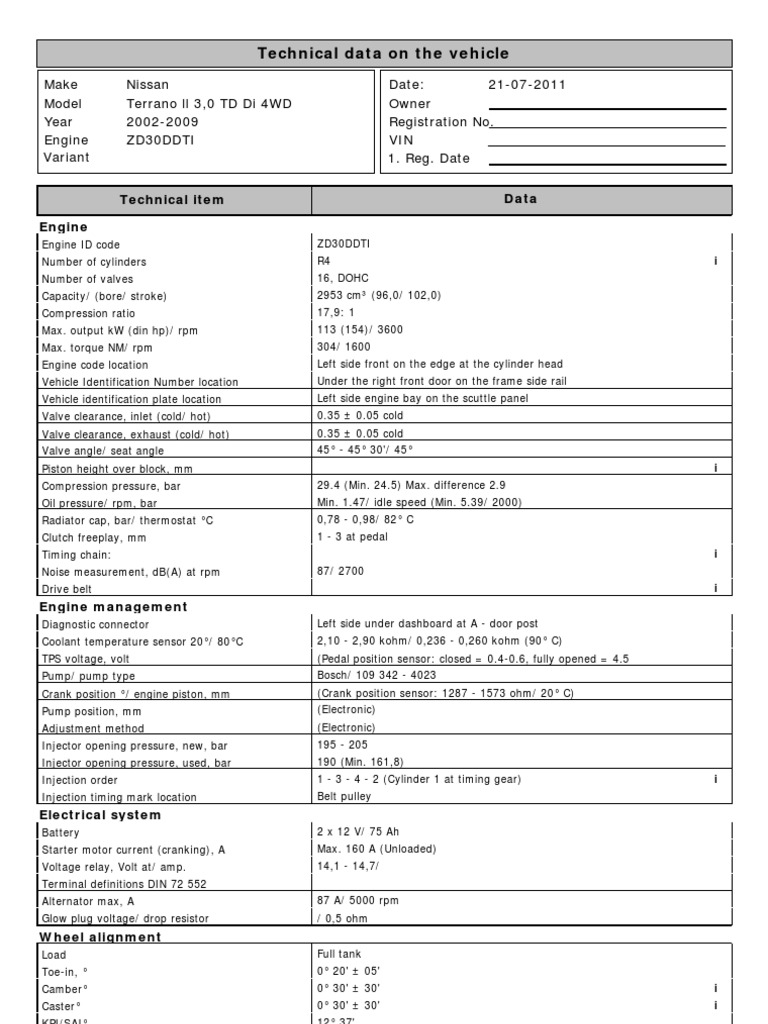 Terrano R20 Workshop Manuals Includes Zd Td Engines - Periodic maintenance beyond the last period shown on the tables requires similar maintenance. Maintenance Schedule for Diesel Engine Models (annual mileage < 30,000 km/year) Engine Maintenance TD27Ti engine Abbreviations: R = Replace I = Inspect. Correct or replace if necessary C = Clean MAINTENANCE OPERATION MAINTENANCE INTERVAL Refer-ence page. 1) Nissan Terrano II Model R20 Series Service Manual. 2) Nissan D21 Series Supplement-X Service Manual. 3) Nissan Model TD Series Diesel Engine Service Manual. They are available for collection in Edenvale. Send me a PM if interested. Nissan Workshop Manuals - Page 2 - 4x4 Community Forum Terex tip dumper parts manual, you only need to visit our. Apr 21, 2015 · nissan zd30 td25 td27 diesel repair workshop manual this is a factory nissan repair manualand covers the-zd30td25td27diesel enginescovers all of the enginenot just part of it like some sold on herei used this manual for many yearswhen working as a mechaniccomes in easy to read and print pdf user tags: nissan patrol navara (id 197830546) [].