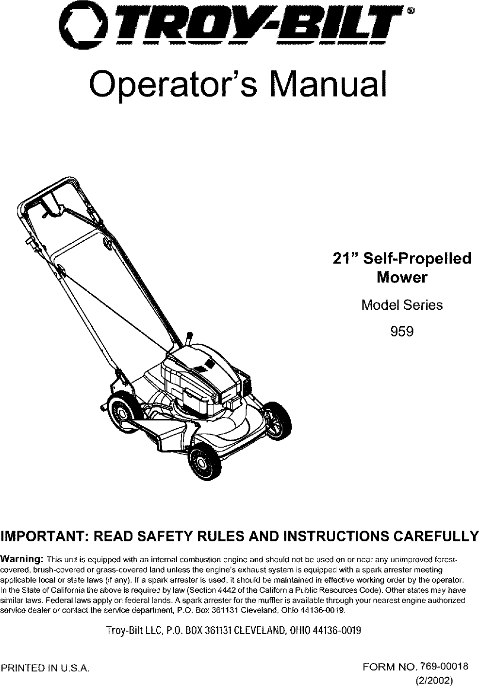 Troybilt 12A 959K063 User Manual MOWER Manuals And Guides L0404057