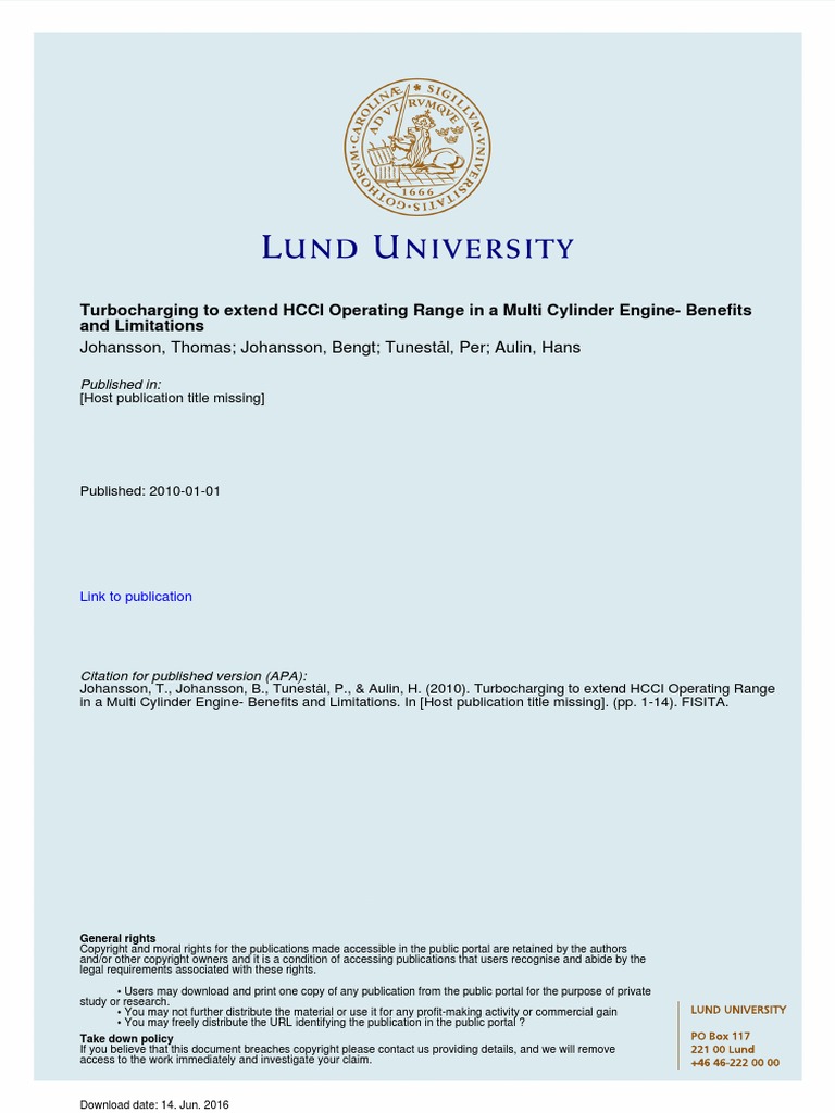Turbocharging to extend HCCI Operating Range in a Multi ...