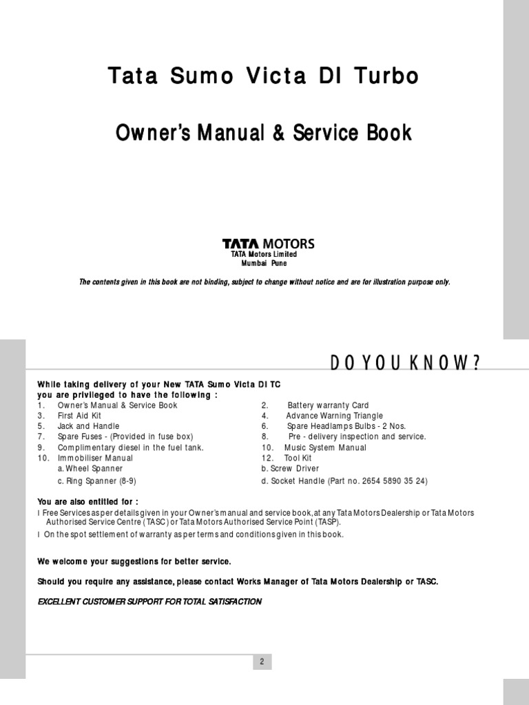 Tata Sumo Victa DITC Manual | Tire | Seat Belt