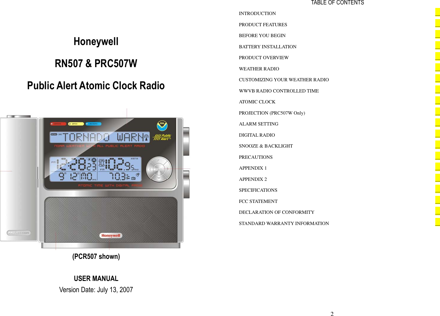 Honeywell Prc507W Users Manual PCR19W