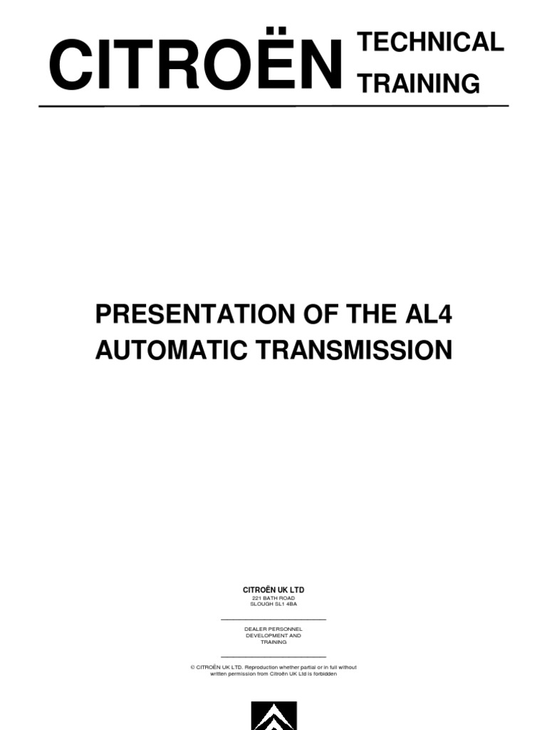 PRESENTATION OF THE AL4 AUTOMATIC TRANSMISSION CITROËN UK LTD 221 ... Features Lock-up of 2nd, 3rd and 4th gears. Electronic control of all